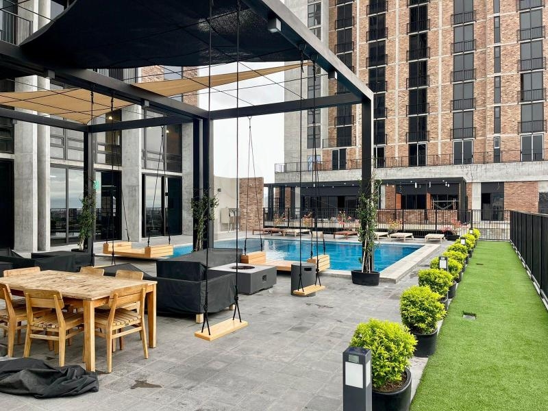 Se ofrece equipado incluye mtto. Este departamento cuenta con 2 recámaras, 2 baños completos, sala, cocina, vestidor, lavandería, terraza e incluye 1 cajón de estacionamiento. Área comercial en primer piso de Torre W: 4+ restaurantes (pizzas, sushi, panadería - cafetería, tacos,..), farmacia, tienda de abarrotes 24-7, Cajero ATM, centro de copiado. Equipado con: • Cocina completa, refrigerador 18 ft3, microondas, parrilla eléctrica, campana, lava-secadora, boiler. • 2 Closets en área de vestidor, canceles y espejos en los 2 baños • Persianas blackout en las recamaras y persiana traslucida en sala / estancia. • 2 minisplits Inverter de 1 tonelada (uno en c/recámara), 1 minisplit Inverter de 2 tons frío/calor en sala / cocina. • 2 abanicos de techo. Se aceptan estudiantes. Amenidades en Torre W: - Gimnasio, asadores, co-work, alberca, juegos infantiles, sala de juegos / cine, restaurantes en primer piso / área comercial.