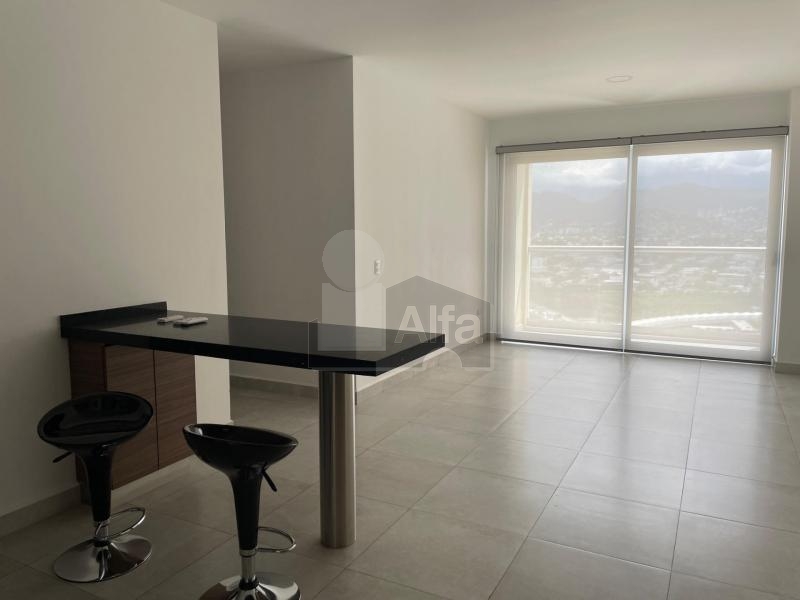 Departamento en renta, Torre Luzia, en el Centro de Monterrey, Nuevo León. Cuenta con vista a Fundidora y acceso privado y directo al Paseo Santa Lucía. Consta de 2 recámaras, 2 baños completos, equipado con closets, persianas, minisplit frío/calor, centro de lavado, boiler, cocina equipada con estufa, horno, y refrigerador.