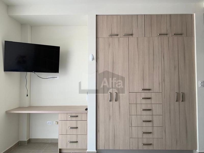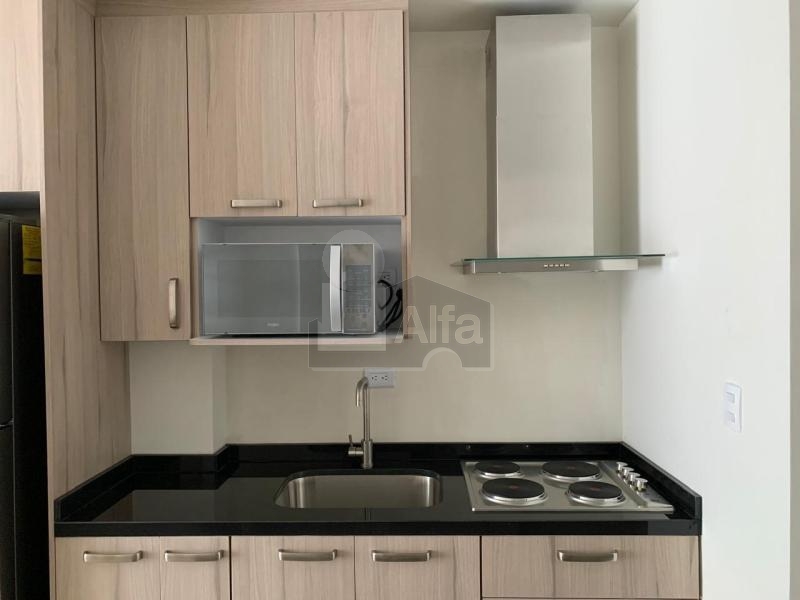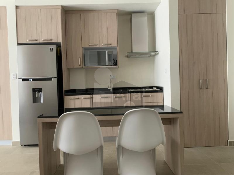 Loft en renta, Torre Amaire, Cumbres Allegro en Monterrey, Nuevo León. Vive con estilo en la zona cumbres en este acogedor Loft amueblado, ubicado en el piso 6 de la Torre Amaire al pie del cerro de las mitras con vistas privilegiadas. Este Loft cuenta con las siguiente distribución: Cocina integral con barra desayunador, sofá, recamara matrimonial, baño completo, centro de lavador y boiler, cuenta con un cajón de estacionamiento. Torre con amenidades como piscina, gimnasio, salón de eventos, áreas verdes, asadores y zona de mascotas.