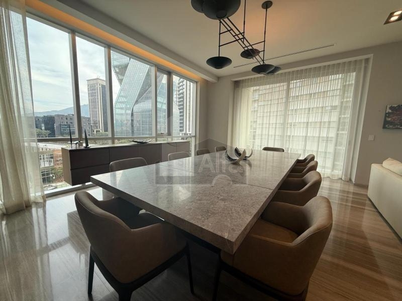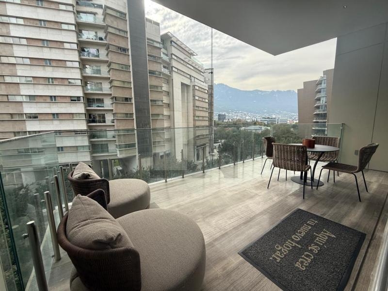 Departamento de lujo en renta en Punto Central, San Pedro Garza García, Nuevo León. Este departamento amueblado de gran lujo ofrece un diseño contemporáneo con acabados premium que combinan elegancia, confort y funcionalidad. Actualmente se encuentran disponibles cuatro departamentos, cada uno con tres recámaras, todas con baño completo, además de cocina equipada, sala y comedor de excelente iluminación natural. Cuenta con una terraza privada de 47 m² y bodega de 10 m², ideal para brindar mayor comodidad y espacio de almacenamiento.