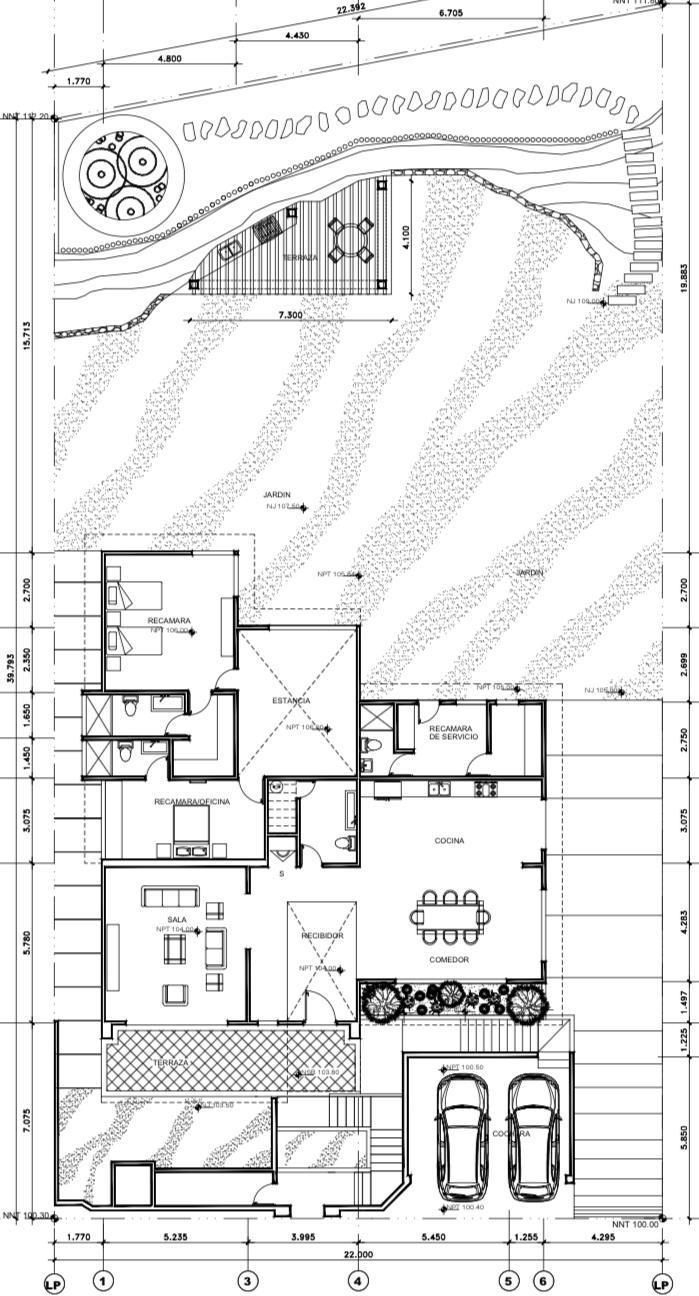 La propiedad cuenta con recibidor, amplia sala, comedor y cocina en concepto abierto, además dos recámaras, con acceso listo para construir una tercera, cada una con baño completo, sala de televisión, lavandería y cuarto de servicio con baño, con una distribución que aprovecha la topografía para brindar amplitud, iluminación y conexión con el exterior.