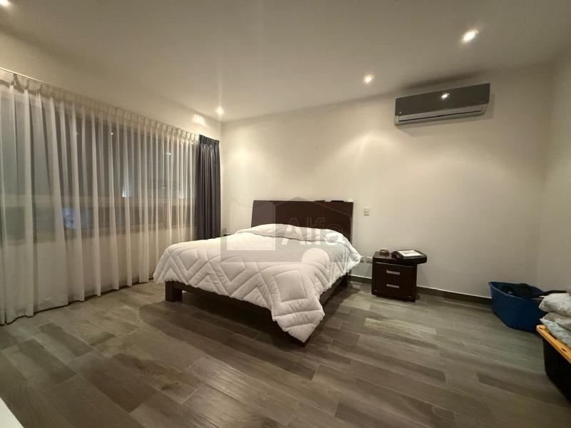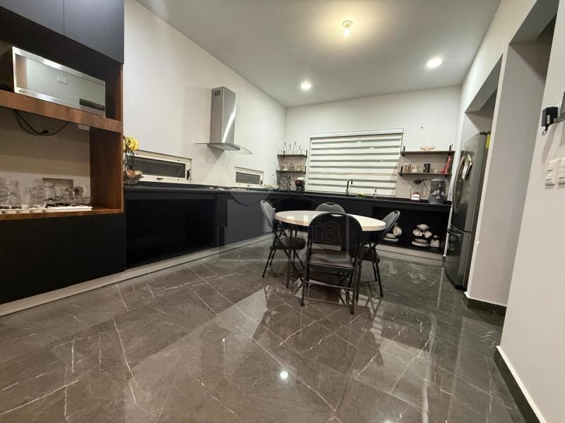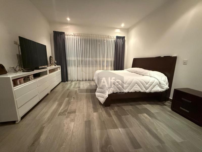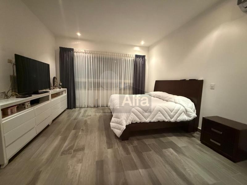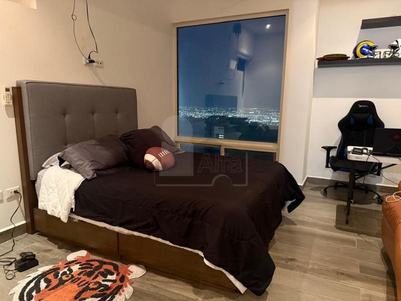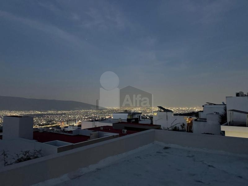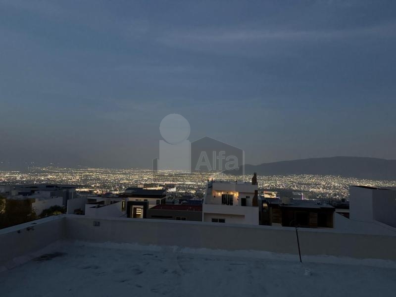 En la planta alta se encuentran cuatro recámaras, todas con baño completo y walk-in closet, además de una terraza con espectaculares vistas al Cerro de las Mitras y al Cerro de la Silla.