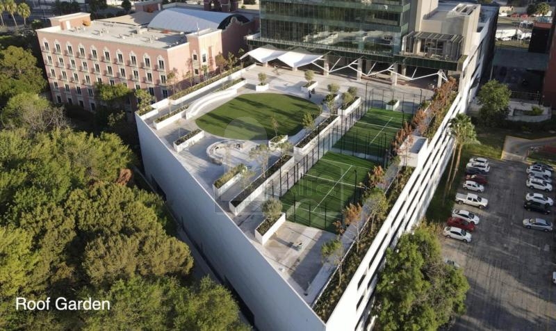 ROOF GARDEN ubicado en el Nivel 4 que ofrece excelentes áreas para cuidar la salud y el bienestar de nuestros inquilinos: Canchas de pádel, big green, gradas, sky bar, baños/vestidores, terraza, kioskos, mesas picnic, mental gym, ping pong, vitapista y zona de columpios