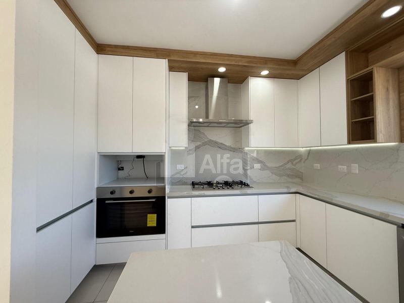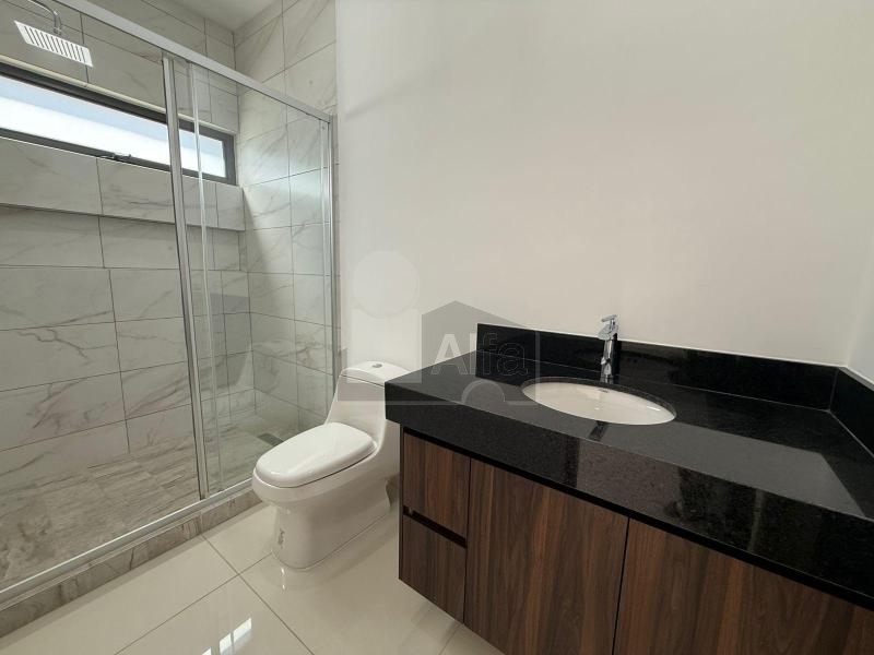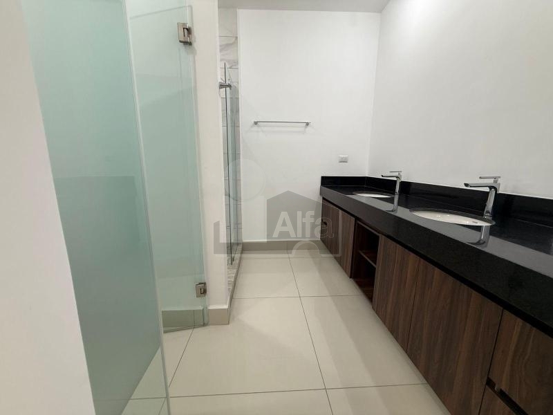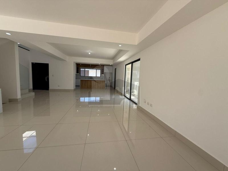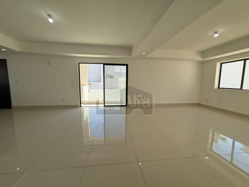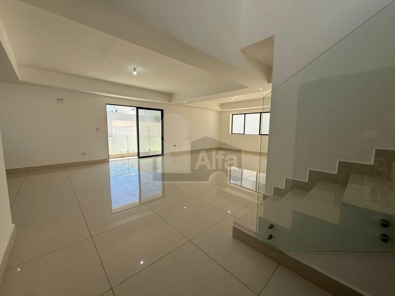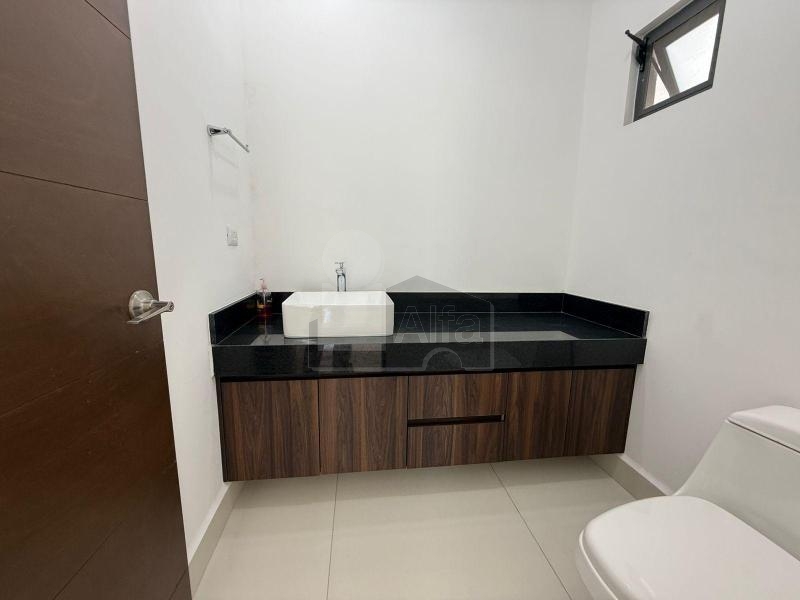 Área social (primer nivel): Cocina integral con cubierta de cuarzo tipo Calacatta, acabados modernos súper mate e iluminación LED integrada. Sala y comedor con excelente iluminación natural, área de bar, baño de visitas, lavandería y acceso directo al jardín trasero.