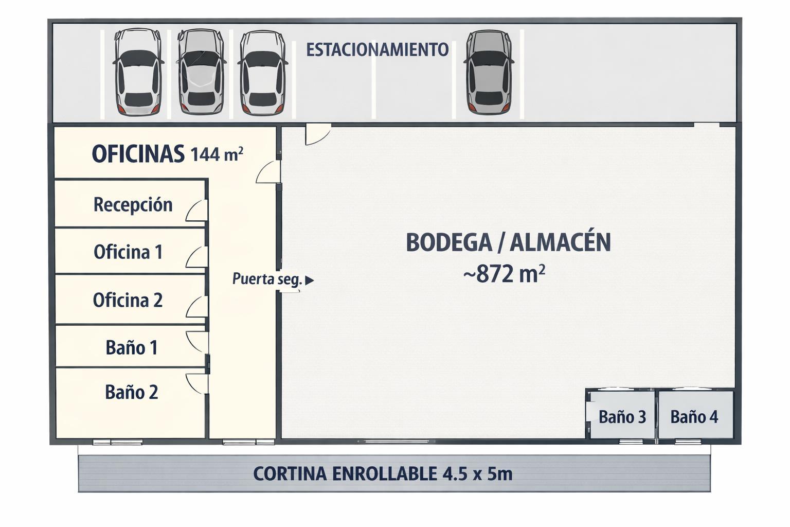 Bodega en renta, Parque 300 en Santa Catarina, Nuevo León. Ubicación Industrial privilegiada y rápido acceso a las principales vialidades del área metropolitana de la ciudad. Dentro de Parque industrial. La propiedad cuenta con 144m² de oficinas, 4 baños distribuidos entre el área de bodega y oficinas, 4 cajones de estacionamiento techados. Dispone de cortina enrollable de 4.5 x 5 metros y puerta de seguridad independiente. Ofrece una altura mínima de 6.2 metros y máxima de 9 metros, piso de concreto armado pulido de 12 cm de espesor, transformador de 220 trifásica e iluminación LED industrial. Espacio ideal para almacenamiento, logística, manufactura ligera o centro de distribución. **Precio mas I.V.A.**