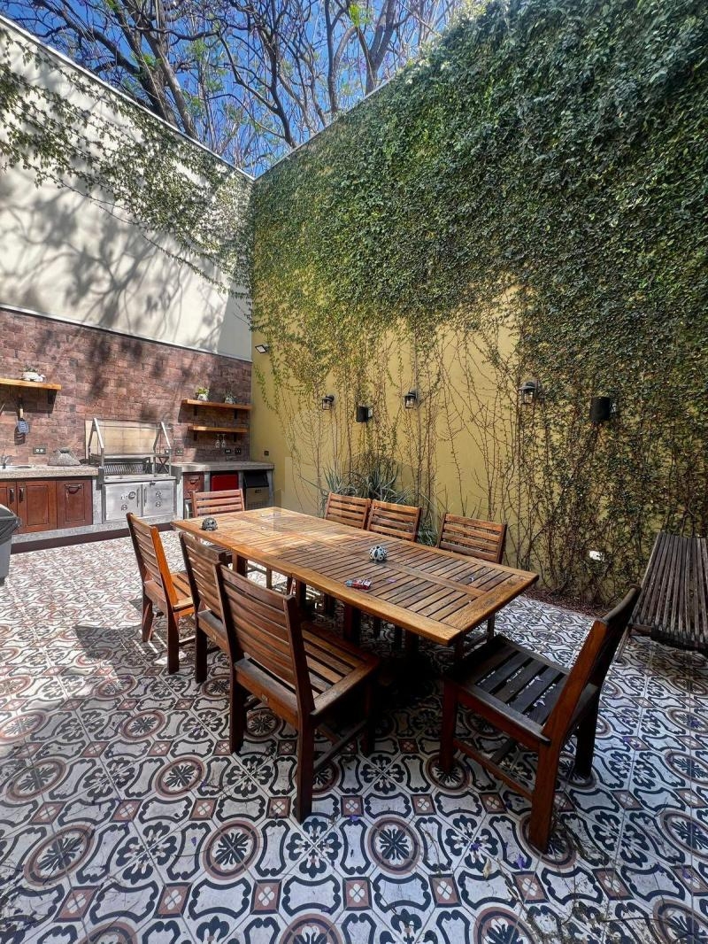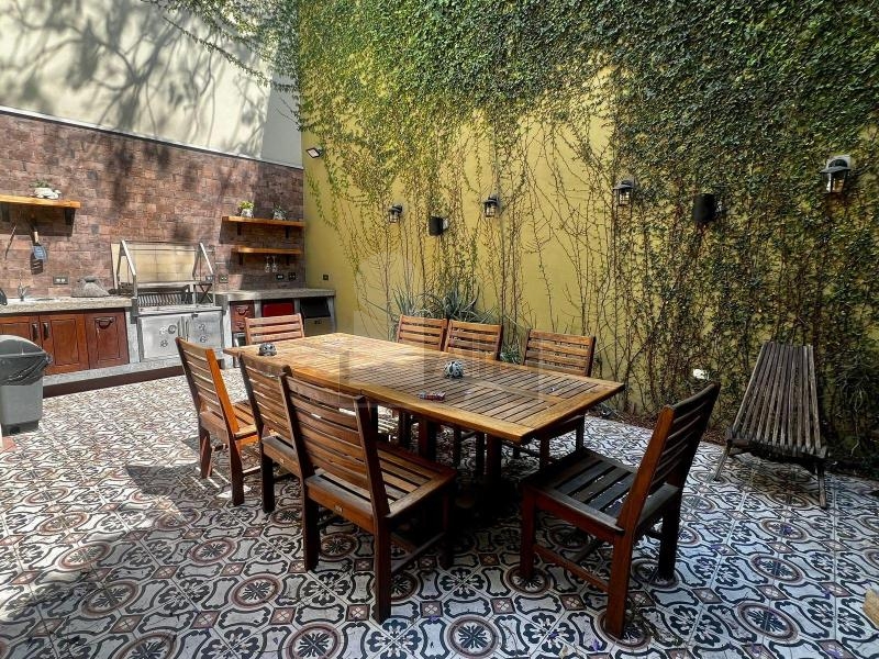 En la parte exterior, la propiedad cuenta con un amplio patio con jardín, perfecto para disfrutar de momentos al aire libre. Además, dispone de un área social con asador, horno y una mesa con capacidad para 8 personas, ideal para reuniones, convivencias y fines de semana en familia o con amigos.